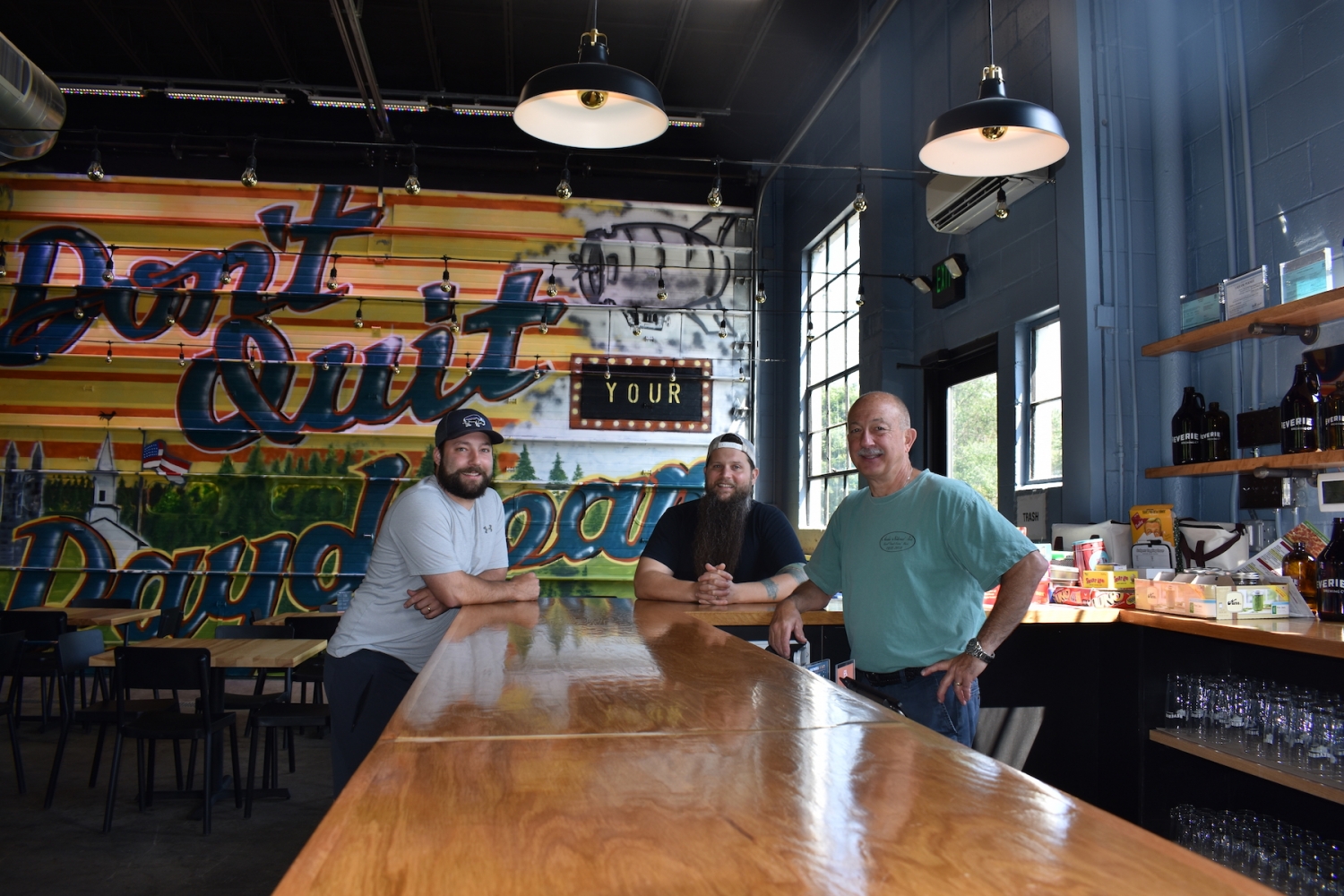 NewSylum Brewing Company’s co-owner Dave Kingsley (left), Mark Lennon (center), and co-owner Mark Tambascio (right).